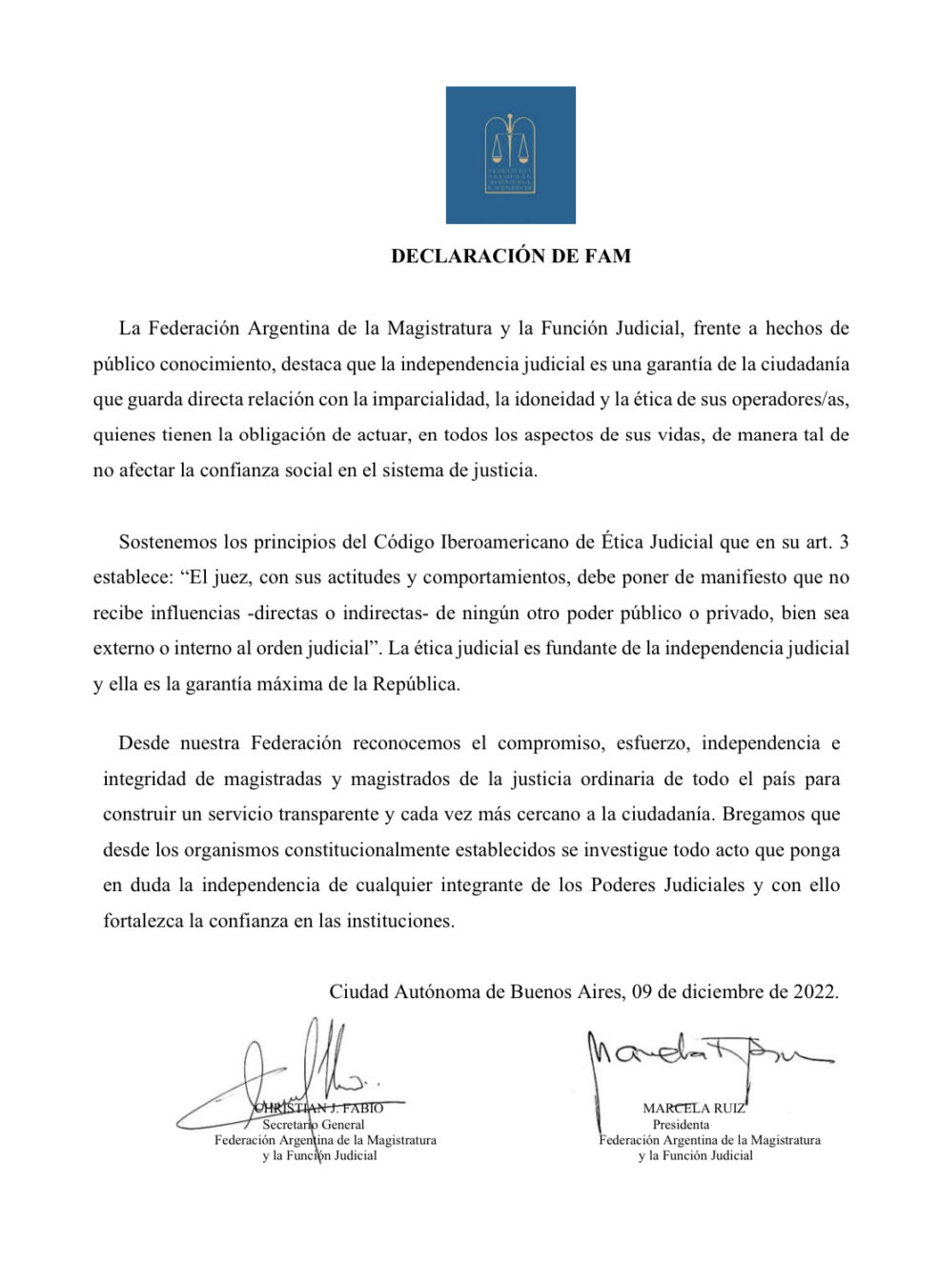 La Federación Argentina de la Magistratura y la Función Judicial, frente a hechos de público…