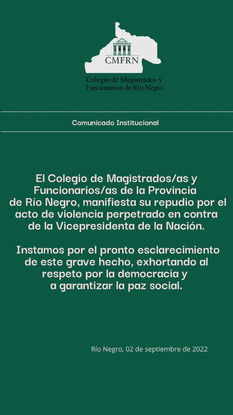 El Colegio de Magistrados/as y Funcionarios/as de la provincia de Río Negro, manifiesta su repudio…
