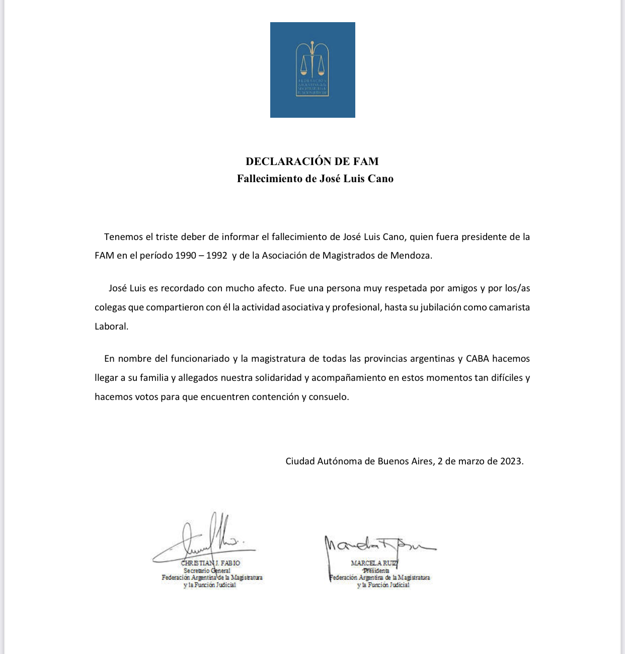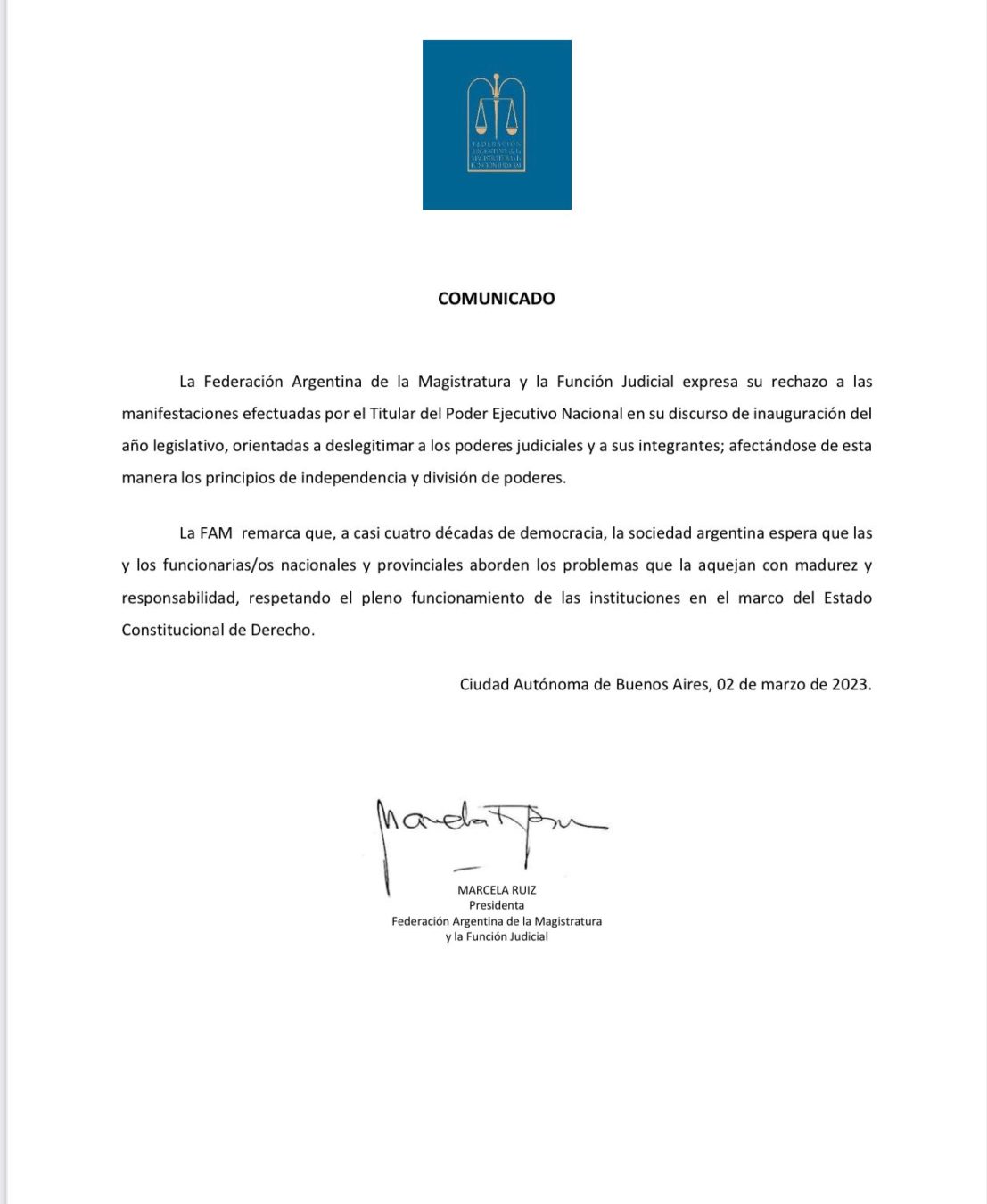 COMUNICADO •La Federación Argentina de la Magistratura y la Función Judicial expresa su rechazo a…