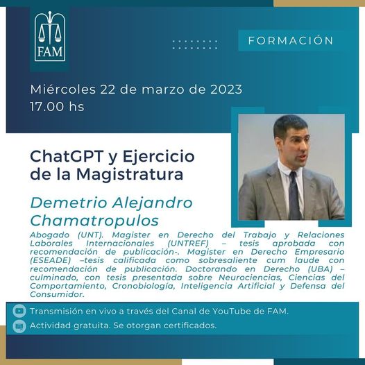Miércoles 22 de marzo de 2023 17 hs. •ChatGPT y Ejercicio de la Magistratura• Demetrio…