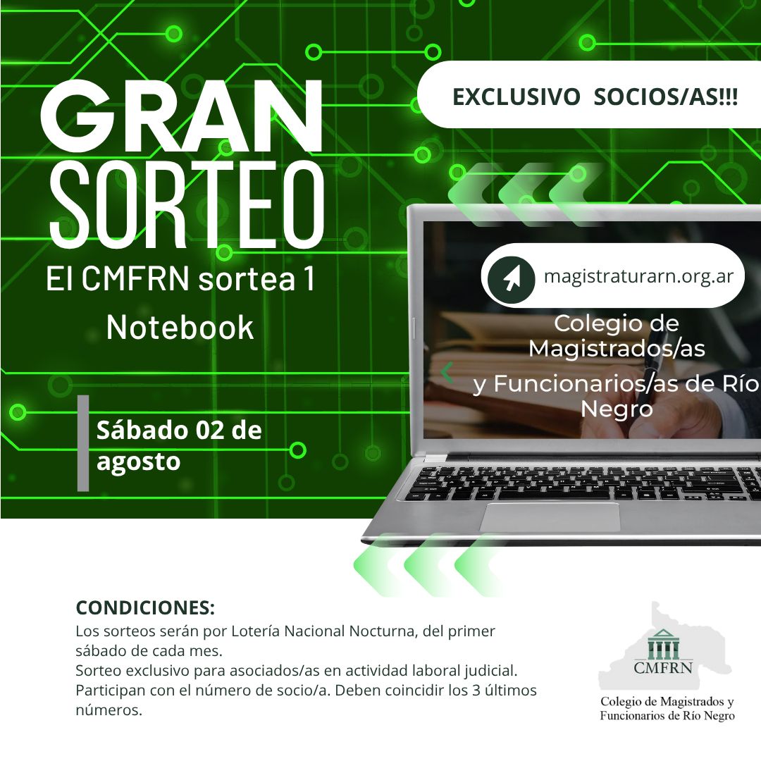 – Mañana, sábado 2 de agosto, sorteamos una Notebook para nuestros/as afiliados/as. ¡Vos podes…