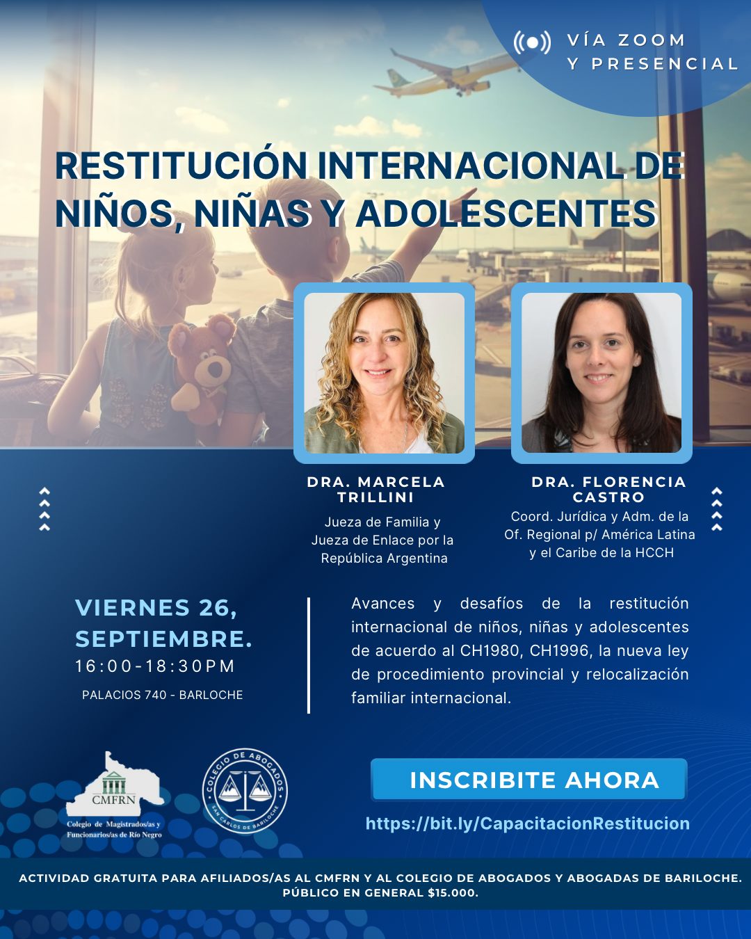 ¡Inscripciones abiertas! 📚 🟢 Capacitación: “RESTITUCION INTERNACIONAL DE NIÑOS, NIÑAS Y ADOLESCENTES” – Avances y…