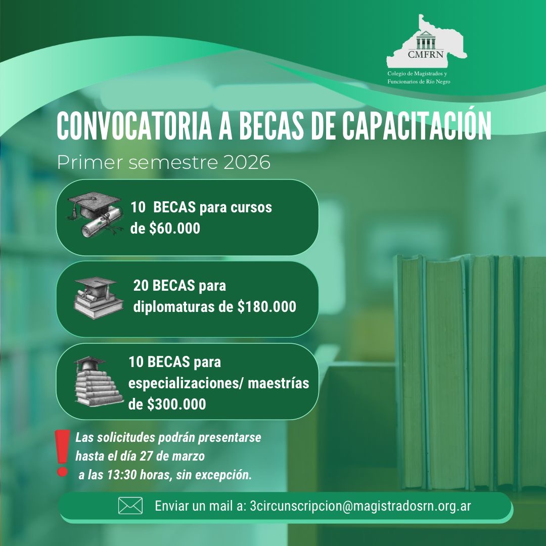 El Colegio de Magistrados/as y Funcionarios/as de Río Negro (CMFRN) otorgará 40 becas destinadas…