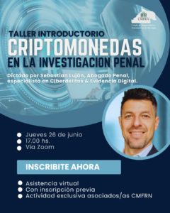 ¡Taller Exclusivo para Asociados/as al CMFRN! 🚨 Taller Introductorio: Criptomonedas en la investigación penal 💻 👨🏫 Dictado por el Dr. Sebastian Luján, Abogado Penal | Ciberdelitos & Evidencia Digital |