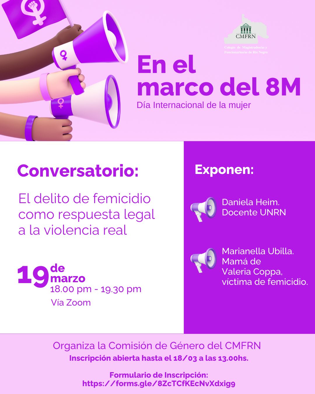 #8M: La Comisión de Género del CMFRN invita a un conversatorio