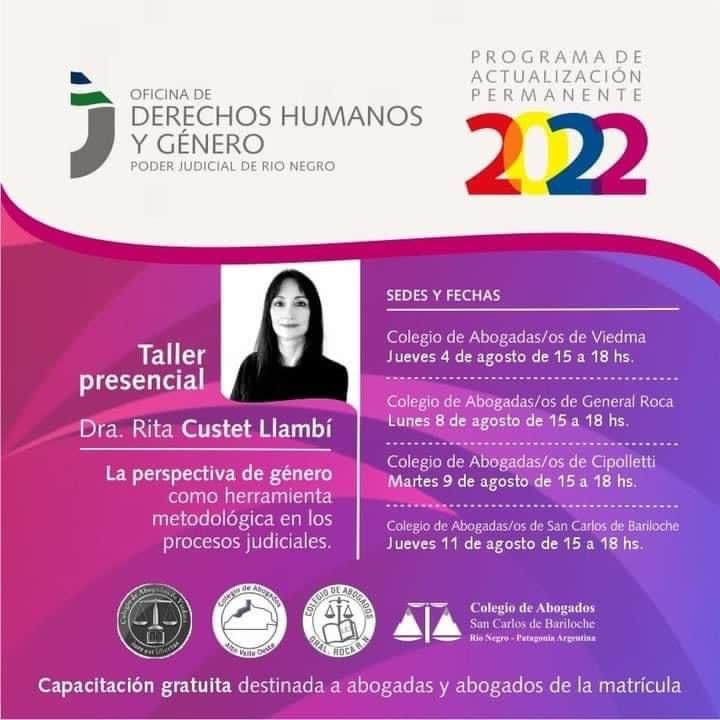 La Oficina de Derechos Humanos y Género del Poder Judicial de Río Negro tiene el agrado de invitarlos/as a la capacitación “La perspectiva de género como herramienta metodológica en los…