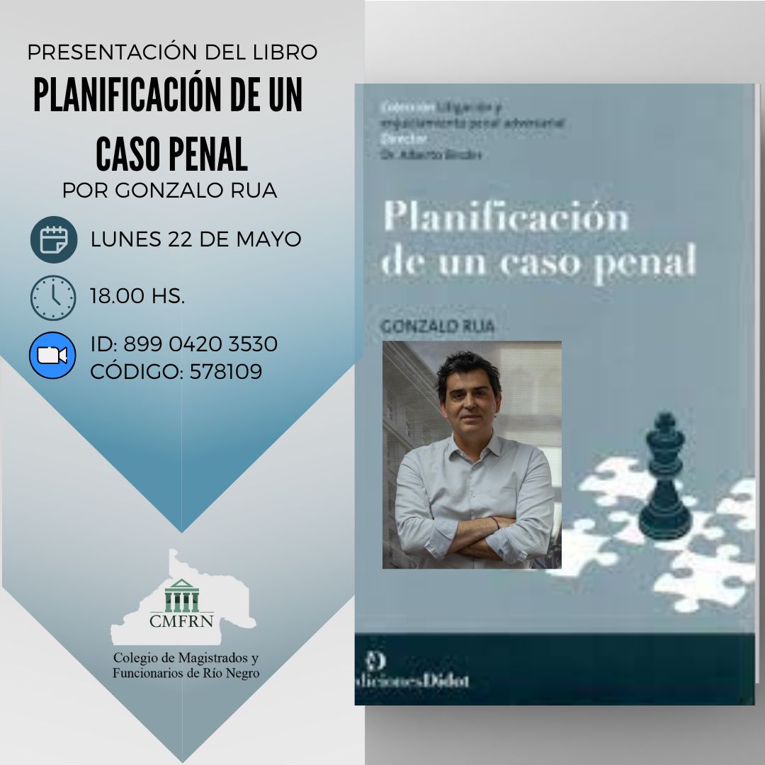 El CMFRN invita a participar de la presentación del libro “Planificación de un caso penal” de Gonzalo Rua