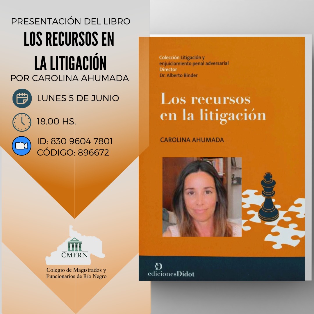 El CMFRN invita a participar de la presentación del libro “Los recursos en la litigación” de Carolina Ahumada