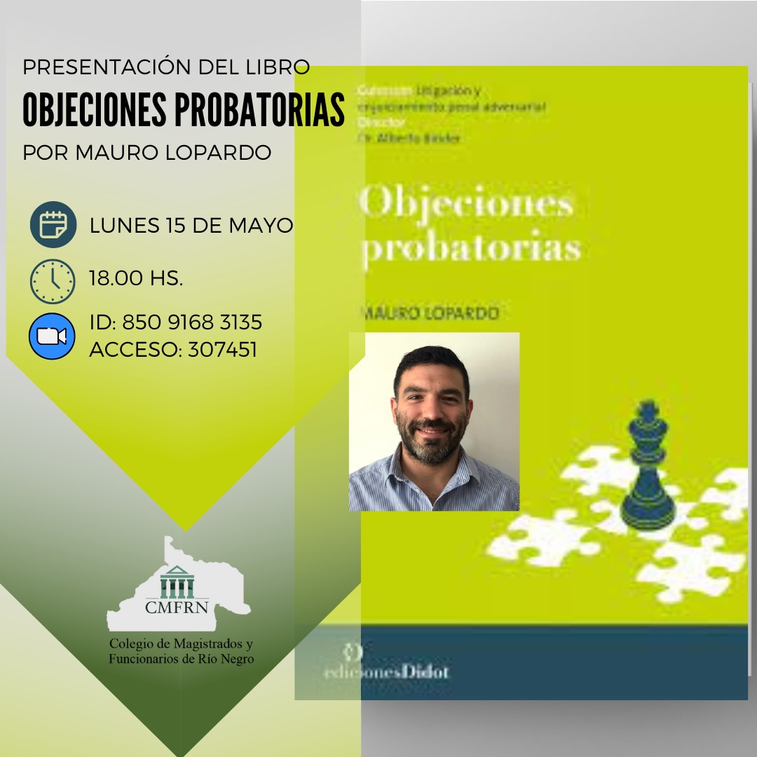 El CMFRN invita a participar de la presentación del libro “Objeciones probatorias” de Mauro Lopardo