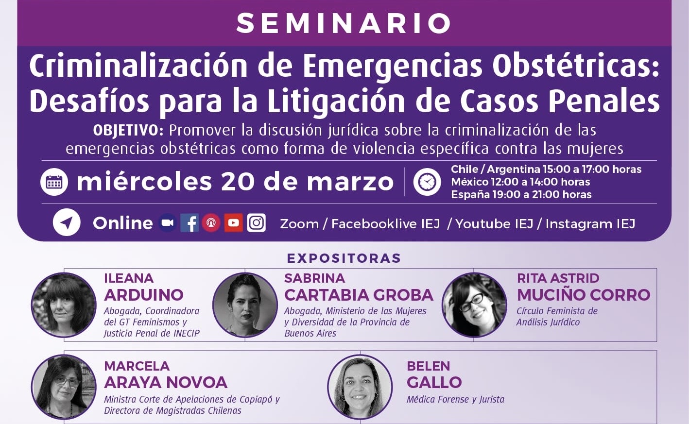 El objetivo del seminario es promover la discusión jurídica sobre la criminalización de las emergencias obstétricas como forma de violencia específica contra las mujeres. ?️ miércoles 20 de marzo ⏰…