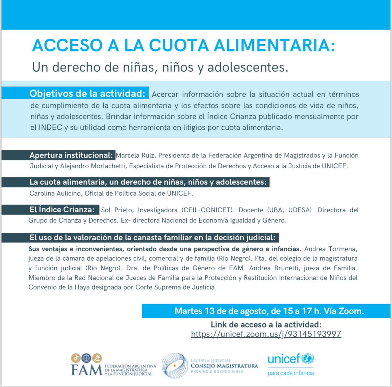 ? El CMFRN invita a la actividad *ACCESO A LA CUOTA ALIMENTARIA* _Un derecho de niñas, niños y adolescentes._ ?️ Martes 13 de de agosto ⏰ de 15 a 17…