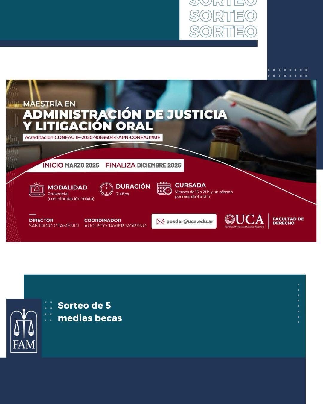 ➡️ SORTEO DE MEDIAS BECAS FAM ? Gracias al convenio entre la Federación Argentina de la Magistratura y la Función Judicial (FAM) y la Pontificia Universidad Católica Argentina (UCA), sorteamos…