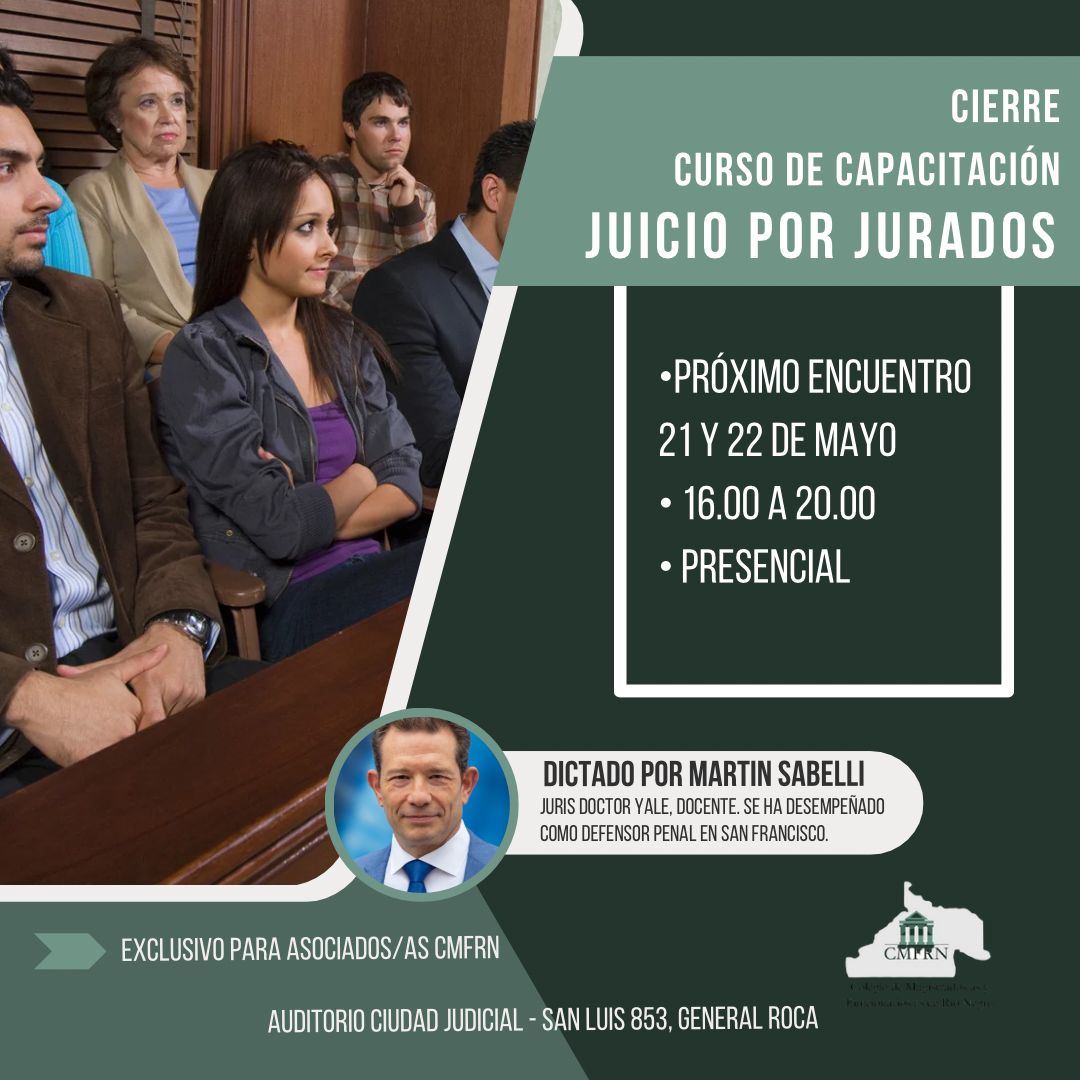 ? El Colegio de Magistrados/as y Funcionarios/as de Río Negro, se encuentra organizando el Curso: Juicio por Jurados, dictado por Martín Sabelli , juris doctor (Yale) quien se ha desempeñado…