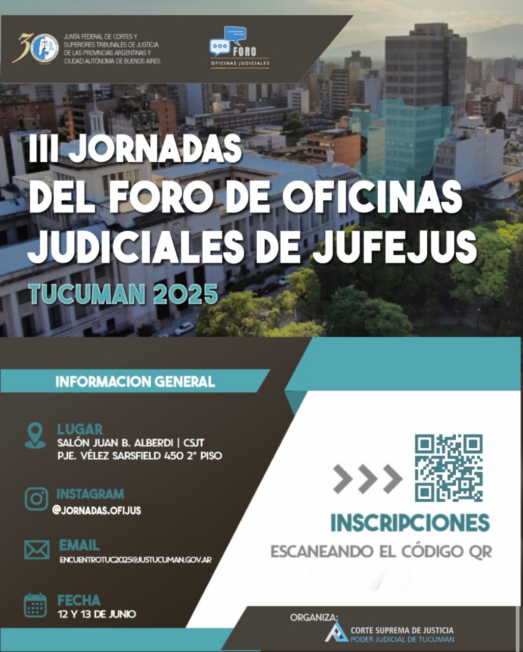 🔵 III Jornadas del Foro de Oficinas Judiciales de JU.FE.JUS Organizadas por la Junta Federal de Cortes y Superiores Tribunales (JU.FE.JUS) 📍*Tucumán* – *Palacio de Tribunales* 🗓️ 12 y…