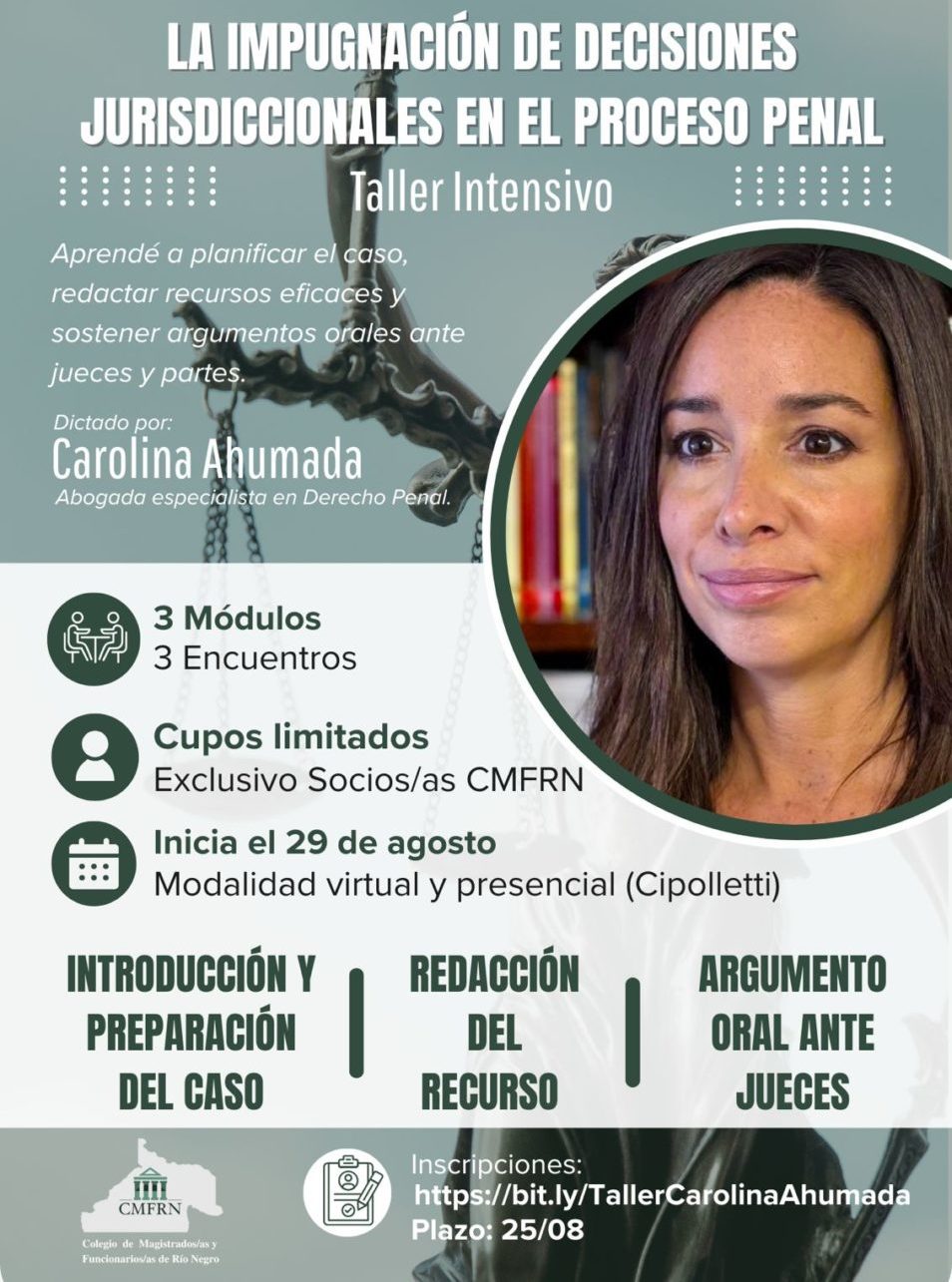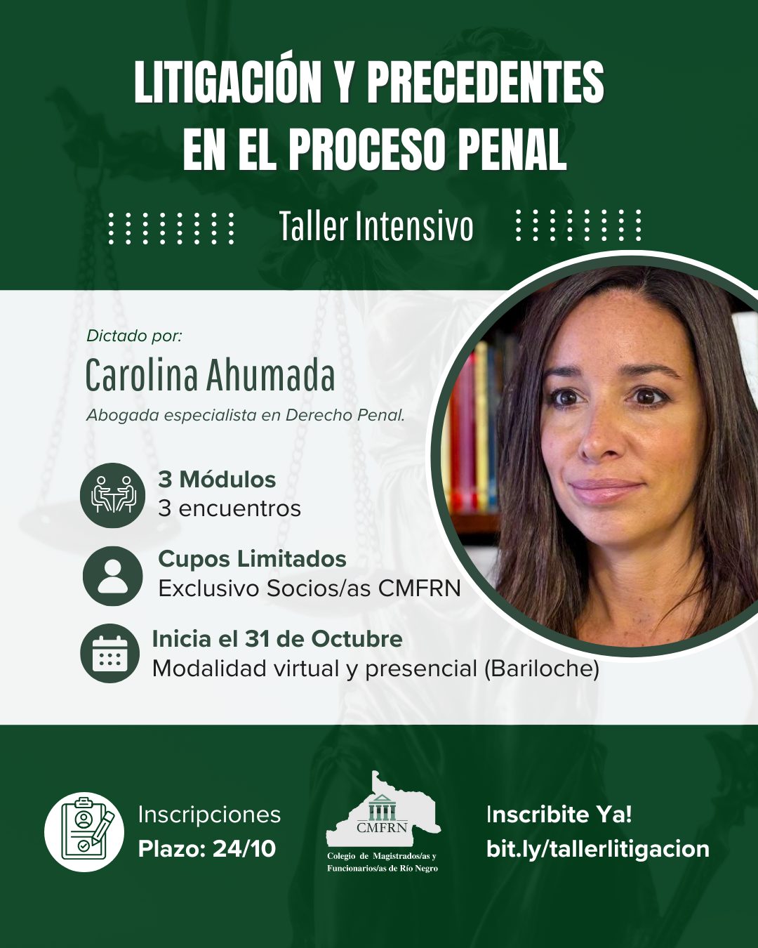 ✨ Capacitación Exclusiva para Asociados/as del CMFRN ✨ 📚👩💼 Curso: “Litigación y Precedentes en el Proceso Penal” Disertante: Prof. Carolina Ahumada 📌 Modalidad mixta • Clase virtual: Viernes 31 de…