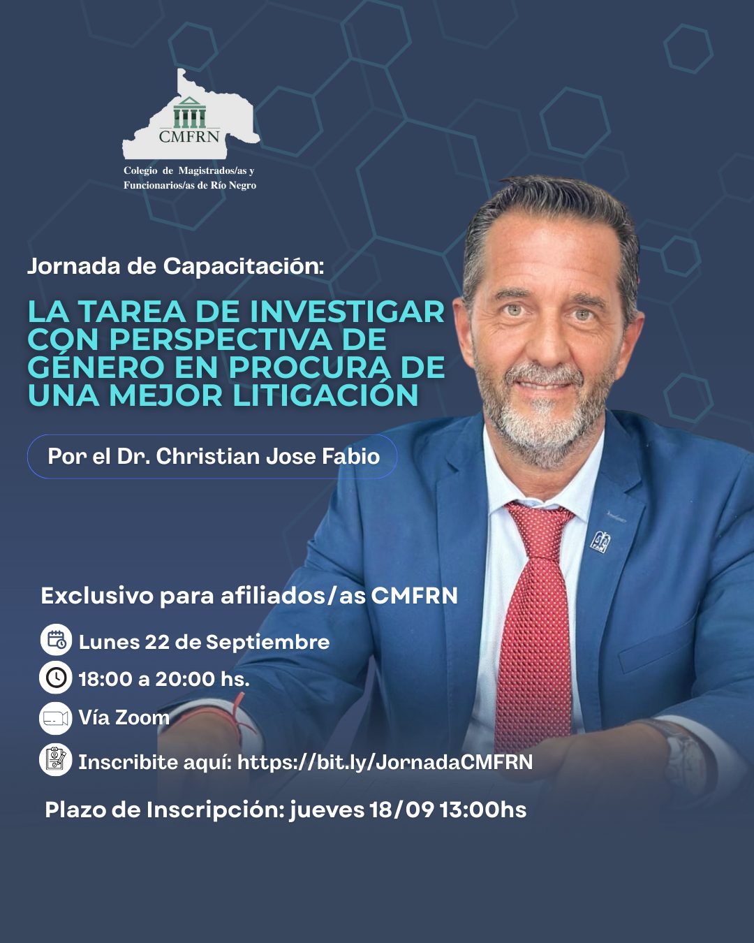 ¡Actividad exclusiva para afiliados/as CMFRN!📚 🟢La tarea de investigar con perspectiva de género en procura de una mejor litigación – Disertante: Dr. Christian Jose Fabio, Agente Fiscal Pcia. de Buenos…