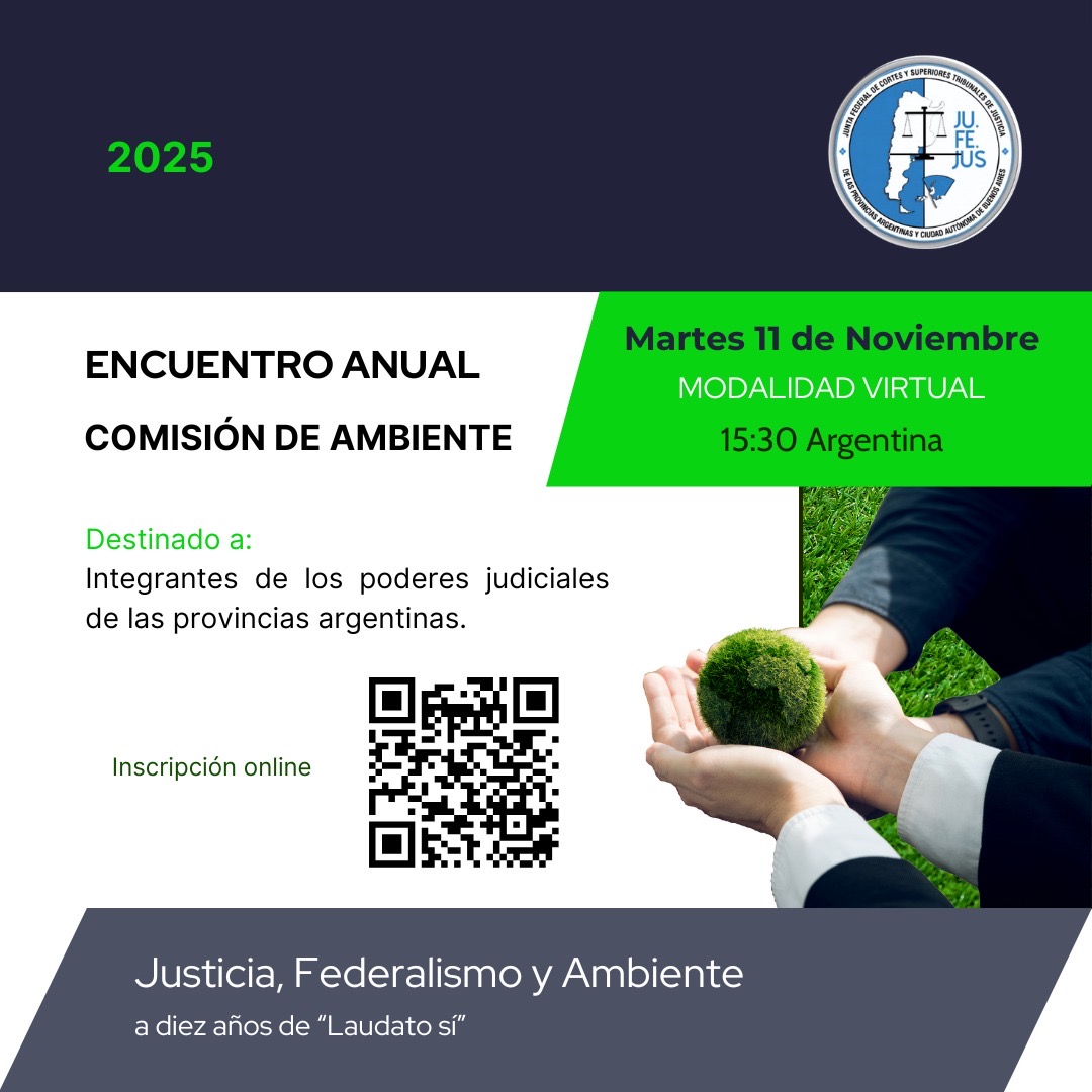 El próximo martes 11 de noviembre a las 15:30 (hora Argentina) se realizará el Encuentro Anual de la Comisión de Ambiente de JUFEJUS, bajo el lema “Justicia, Federalismo y Ambiente,…