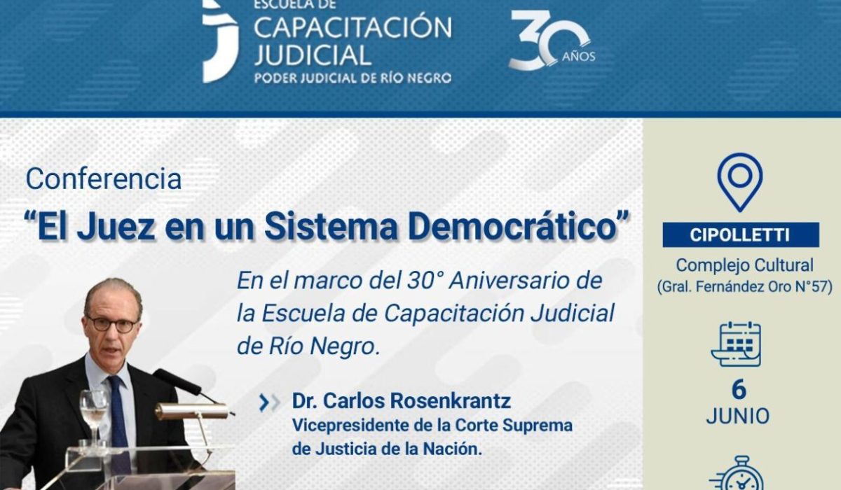📍 En el marco de los 30 años de la Escuela de Capacitación Judicial, disertará el Dr. Carlos Rosenkrantz, Vicepresidente de la Corte Suprema de Justicia de la Nación.